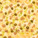 Molho de tomate, brócolis, milho, mussarela,bacon e orégano