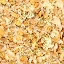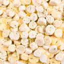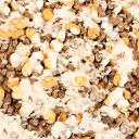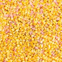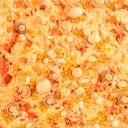 Molho de tomate, strogonoff, milho, mussarela, cheddar e orégano