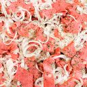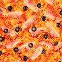 Molho de tomate, coração strogonoff de carene, mussarela, catupiry, bacon e orégano