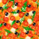 Molho de tomate, tomate seco, rúcula, mussarela e orégano